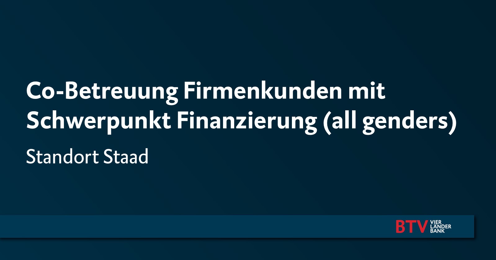 Die BTV Vier Länder Bank AG mit Sitz in Innsbruck zählt mit ihren rund 950 Mitarbeiter*innen zu den erfolgreichsten Banken Österreichs und ist in den Märkten Tirol, Vorarlberg, Wien, Süddeutschland, der deutschsprachigen Schweiz und Südtirol aktiv.
