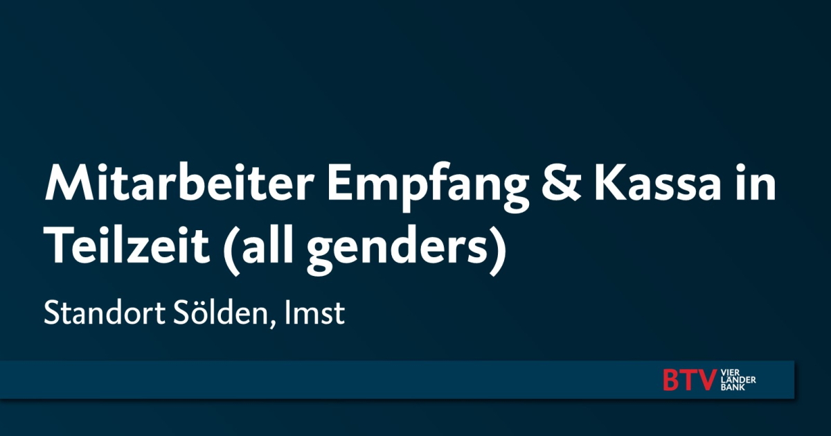 Die BTV Vier Länder Bank AG mit Sitz in Innsbruck zählt mit ihren rund 950 Mitarbeiter*innen zu den erfolgreichsten Banken Österreichs und ist in den Märkten Tirol, Vorarlberg, Wien, Süddeutschland, der deutschsprachigen Schweiz und Südtirol aktiv.