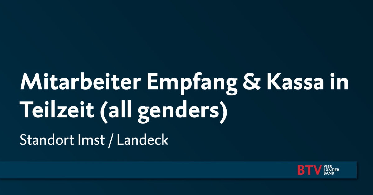 Die BTV Vier Länder Bank AG mit Sitz in Innsbruck zählt mit ihren rund 950 Mitarbeiter*innen zu den erfolgreichsten Banken Österreichs und ist in den Märkten Tirol, Vorarlberg, Wien, Süddeutschland, der deutschsprachigen Schweiz und Südtirol aktiv.