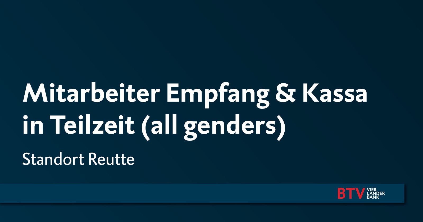 Die BTV Vier Länder Bank AG mit Sitz in Innsbruck zählt mit ihren rund 950 Mitarbeiter*innen zu den erfolgreichsten Banken Österreichs und ist in den Märkten Tirol, Vorarlberg, Wien, Süddeutschland, der deutschsprachigen Schweiz und Südtirol aktiv.