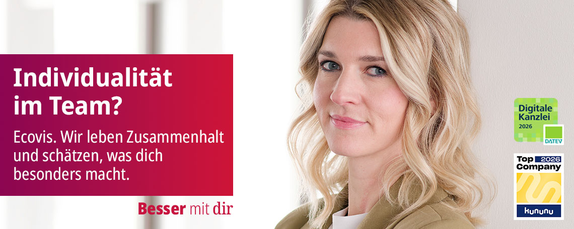 Menschen machen ein Unternehmen aus. Sie alle bringen unterschiedliche Gedanken, Erfahrungen und Fähigkeiten mit. Wir schätzen und fördern das Fachliche ebenso wie den Menschen in all seinen Facetten. Denn gemeinsam machen wir Ecovis besser. Besser für uns und besser für unsere Mandanten.