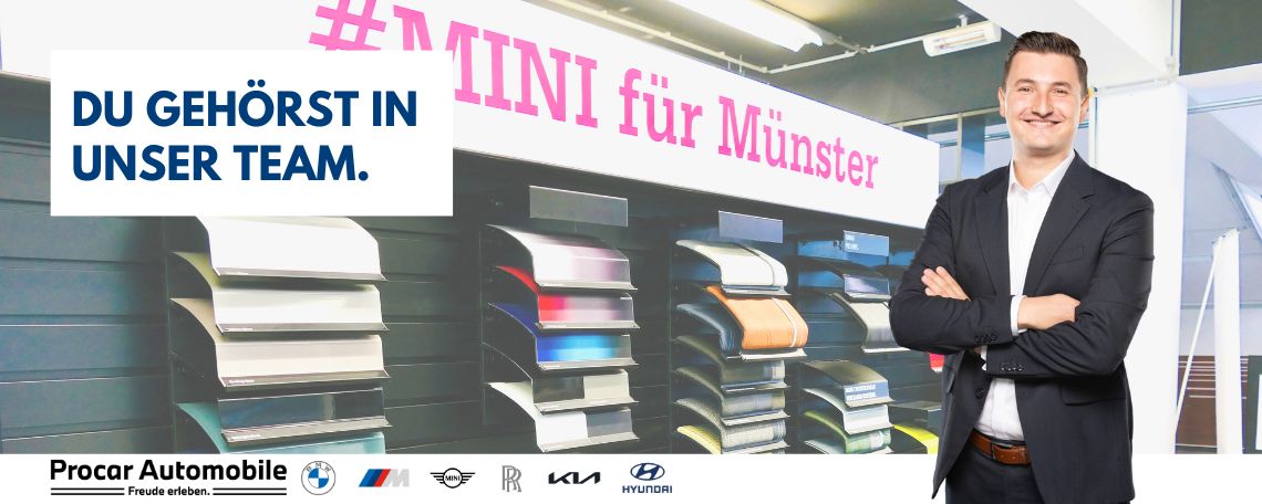 Seit über 30 Jahren steht die Procar Automobile Gruppe für Zuverlässigkeit, Dynamik und Kundenzufriedenheit. Mit 24 Standorten in NRW, über 1.450 Mitarbeitenden und ca. 300 Auszubildenden zählen wir zu den größten Händlern für BMW, MINI, Rolls-Royce, KIA und Hyundai in Deutschland.
