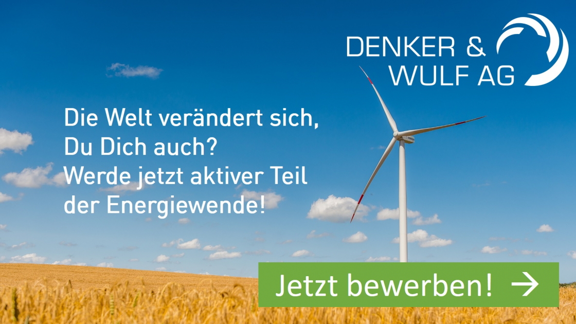 DenkerWulf zählt zu den führenden Windparkentwicklern in Deutschland - die Wurzeln der ersten Projekte reichen bis in das Jahr 1991 zurück. Mit der Erfahrung von über 930 errichteten Windenergieanlagen und einer installierten Leistung von 2,0 GW entwickeln 300 Mitarbeitende an sechs Standorten tragfähige Lösungen rund um die Windenergie an Land. Unser Leistungsspektrum umfasst alle Aspekte eines Windenergieprojekts von der Projektierung kompletter Windparks über das Repowering von Bestandsanlagen bis hin zum technischen und kaufmännischen Windparkmanagement. Bei der Vermarktung des Windstroms denken wir über die Strombörse hinaus. Auch im Bereich der Photovoltaik bringen wir die Energiewende mit ganzheitlichen Konzepten und innovativen Lösungen voran. Strombasierte Lösungen überführen auch den Mobilitäts- und Wärmesektor in eine nachhaltige Zukunft - ob über eine direkte Elektrifizierung oder intelligente Power-To-X Konzepte.